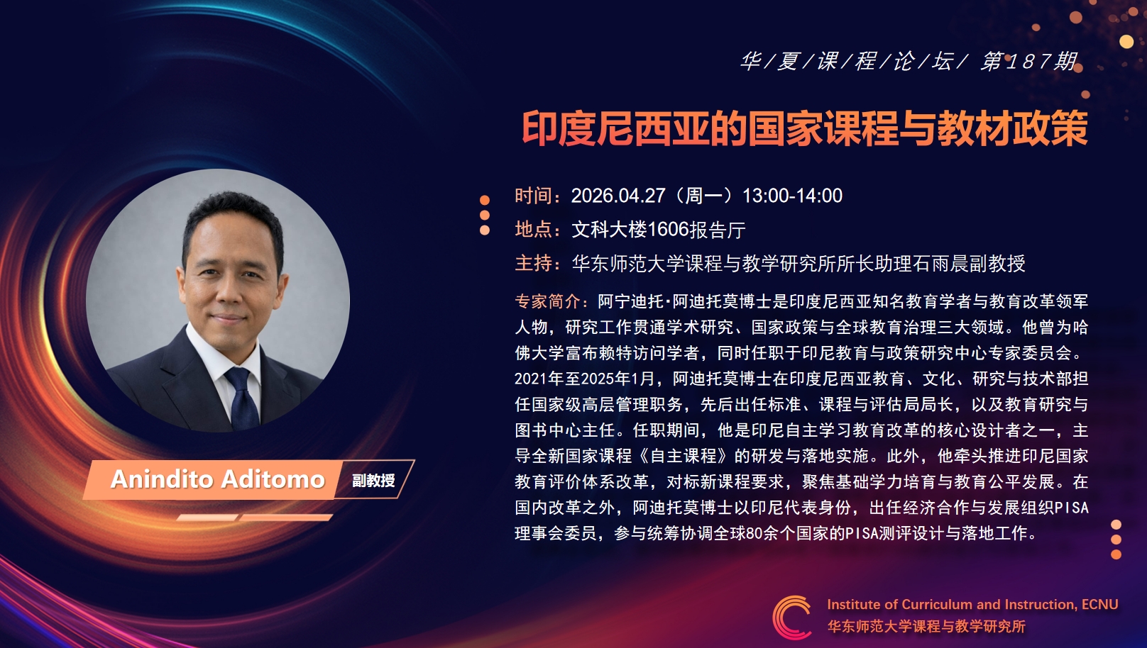ICI华夏课程论坛187期║印尼教育与政策研究专家Anindito Aditomo即将分享“印度尼西亚的国家课程与教材政策”
