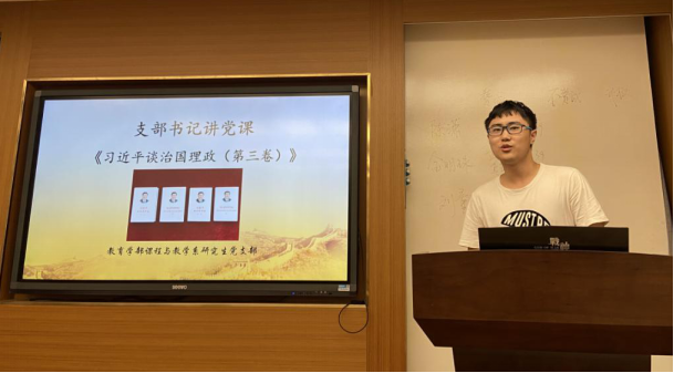 第三环节,董光楠同志带领全体党员共同学习了《习近平谈治国理政(第三卷)》,这是充分反映党的十九大以来习近平总书记领导全党全国各族人民攻坚克难﹑砥砺前行伟大实践的教材,更是我们党不忘初心﹑牢记使命,团结带领人民创造更加幸福美好生活的最新教材。书记表示,我们学生党员不断加强理论学习与自身党性修养,知行合一、勇担使命。