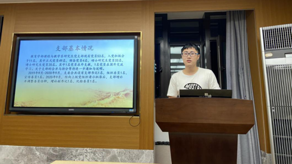第一环节,为了加快新老党员之间的了解,首先支部新生党员同志与老党员同志进行了简单的自我介绍,随后支部书记董光楠同志就支部基本情况、会议流程和会议主要内容等三方面进行了简单介绍。