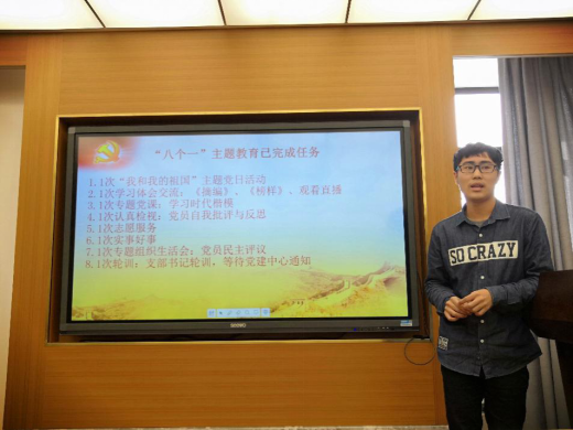 会议第二项,董光楠同志做支部书记述职。“述职”全面介绍了本支部一学期以来完成的任务,即“八个一”主题教育,并对支部工作进行了总结。本学期每半个月按时上交一份支部工作总结与党员学习情况,党建中心任务已全部完成;组织生活记录本与新闻稿及时更新,年度记录本已审核通过;考勤制度有序运转,党员发展工作也圆满完成。董光楠同志认为,大家的共同努力使得任务圆满完成,在喜悦的同时更要反思不足,努力提升不足。
