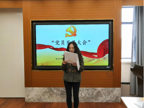 会议第一项,2017级课程与教学系博士研究生刘笛月同志党员发展大会。依据规定,刘笛月同志已符合党员发展要求。依据发展大会流程,刘笛月同志、考察联系人王厚红,支委董光楠依次上前汇报该发展对象考察期间表现。经与会党员(到会有表决权的正式党员31人,超过本支部有表决权党员半数,符合规定人数)讨论并投票(有效票31张,无效票0张)决定,推荐刘笛月同志发展成预备党员。