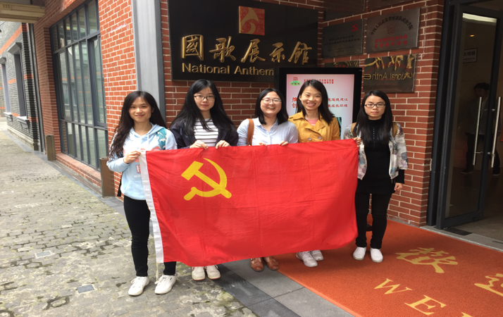 国歌展示馆小组在2017年4月25日前往目的地进行参观学习。国歌纪念馆位于上海市杨浦区。国歌纪念馆是《义勇军进行曲》的诞生地。国歌纪念馆由序厅、国歌诞生厅、国歌纪念厅、“我”和国歌厅、国歌震撼厅以及世界各国国歌厅六部分组成。小组随着讲解员的步伐, 聆听了《义勇军进行曲》诞生和传播的过程,体悟了《义勇军进行曲》从电影《风云儿女》的主题曲到成为中华人民共和国国歌的历程。一进门,党小组成员们就看到了《义勇军进行曲》的谱子,伴随着振奋人心的的歌声,党小组成员们都动情地跟唱起来。随后,映入眼帘的是一组照片,这组照片展示了“九・一八”事变后,为了唤起民众抗日,中国共产党领导的“电影小组”于1934年春在上海建立左翼影片拍摄基地――电通影业公司,田汉为其创作完成抗战影片《风云儿女》,聂耳为主题歌《义勇军进行曲》谱曲的故事,党小组成员们纷纷感叹聂耳在被通缉,流浪日本的时候,仍坚持完成曲子,送回中国的爱国精神。在欣赏照片的时候,视线被一组雕像所吸引,这组塑像重现了的电通公司摄制《风云儿女》影片的一个场景,模模糊糊地听到了拿着烟斗的男主人沙哑的嗓音,欣赏了饱含真挚感情的演技。接着,在一组组陈列柜中,有一个略显锈色的唱片,这个唱片正是坐落在徐汇区的百代唱片公司为电通公司灌制首版《义勇军进行曲》唱片。随后出现了放大版的七人小组,他们是最早演唱《义勇军进行曲》的成员,分别是盛家伦、郑君里、金山、顾梦鹤、司徒慧敏、施超、袁牧之。