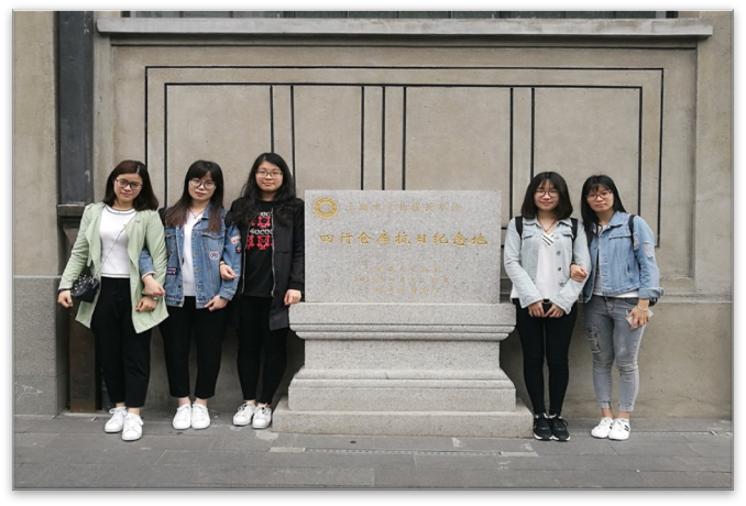 四行仓库抗战第二纪念小组一行五人于5月3日前往参观学习。1937年八一三淞沪抗战后期,中国军队第88师262旅524团1营420余名官兵(外界称为“八百壮士”),奉命固守四行仓库(上海闸北区抗战粮食和炮弹的主要囤积地),英勇抗战。淞沪会战历史毫不陌生,历史书上详尽地撰写抗战细节,也毫无保留地再现了以“谢晋元”为代表的“八百壮士”英雄群体形象,但这对于深处和平现代化的90后来说仍是遥远、陌生的苍白的文字。今日,小组成员身处其中,重读历史,切身感悟抗战的血雨腥风、岁月峥嵘,革命英雄的铮铮铁骨,傲人风姿。小组成员纷纷表示:“参观完四行仓库,我们的内心是澎湃的。居安思危,不忘历史,方能前行。我们现在的幸福生活,都是无数热血青年、爱国人士用生命的代价换来的,他们坚守着信仰用自身的行动,为中国的独立解放做出了巨大贡献。在如今的和平年代,我们更是要在自身的岗位上做出成绩,用自己的微薄付出为祖国母亲的伟大复兴奋斗” 。