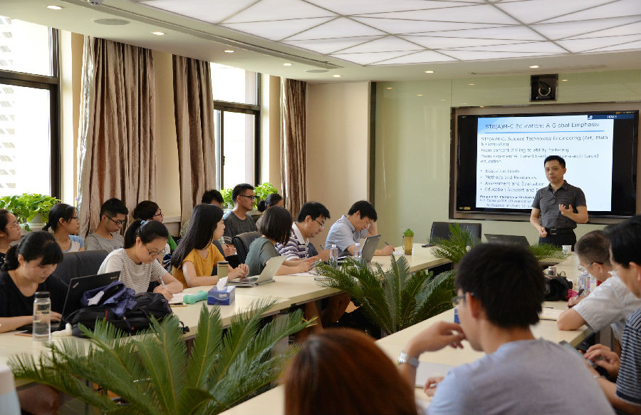 讲座开始,包雷教授首先讨论了美国科学教育尤其是STEM教育的缘起,以及从STEM教育到STE(A)M-C(Science Technology /Engineering /(Art)Math & Computing)教育的演变过程。包教授指出,美国STEM教育最核心的目标是基于社会经济发展的需要,培养美国本土的技术人员/工程师。以STEM为导向,需要重新思考教育的目标、方法与评价,以及构建教育的支持系统。此外,包教授还介绍了美国K-12教育的基本情况,包括美国学校体制、课程设置、学生升学要求、科学教育的内容等。