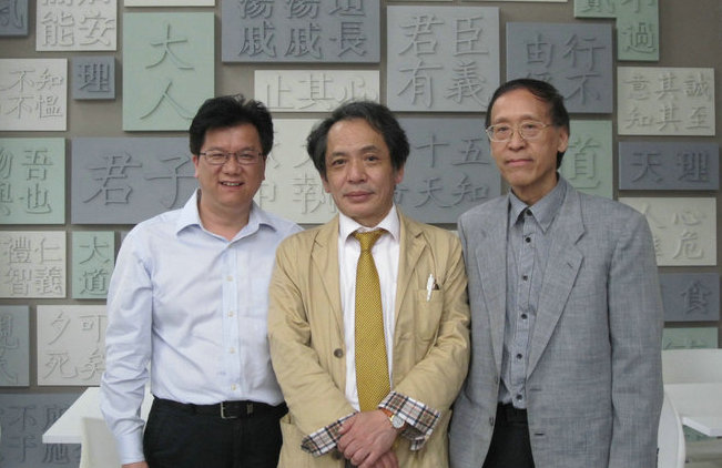 图为佐藤学教授与钟启泉教授、崔允漷教授的合影