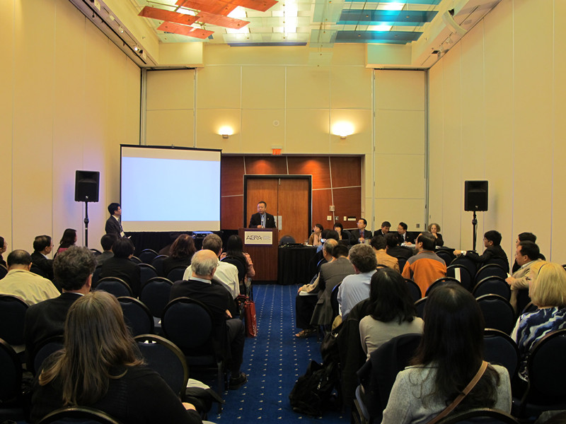 Louise C. Wilkinson教授高度评价了本项目研究成果,并对五份报告一一进行了现场点评。报告会吸引了美国、加拿大、荷兰、比利时等国研究者以及北美华人学者、校友的极大兴趣。在提问阶段,听众纷纷提问,任友群以及项目组主要成员杨向东、文剑冰等对与会听众的提问做了一一回应。 AERA年会是世界教育领域最具规模和影响力的会议,每年4、5月在北美地区举办。近几年的参会人数均超过万人。每届年会的论文接受时间截止前一年的7月,每篇论文由三位专家评审,淘汰率约为70%,申请专题报告会则要求更高。任友群教授主持的基地项目研究成果,去年经过层层评阅,最终获准单独组织一场专场报告会,这在国内教育研究领域还不多见。这也是我所近年来国际化进程和学术研究中的一个重要事件,标志着基地研究成果开始逐渐具备国际水平。