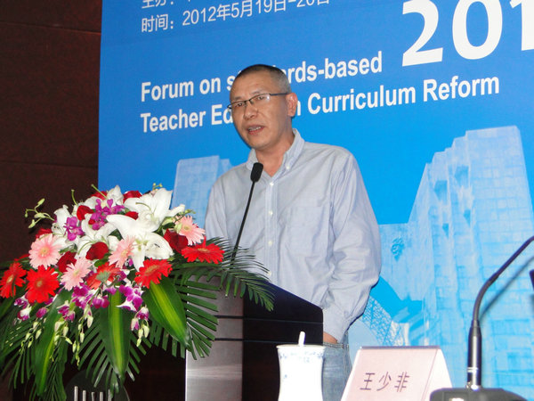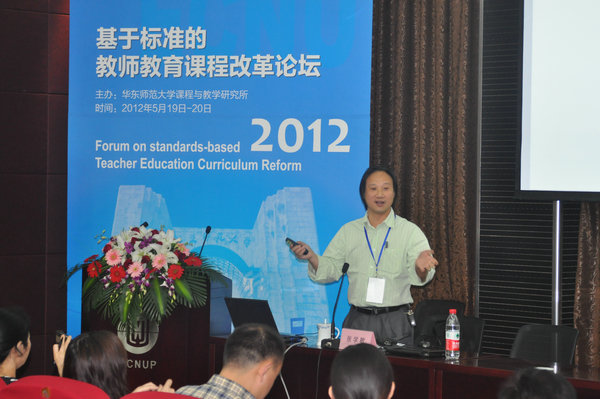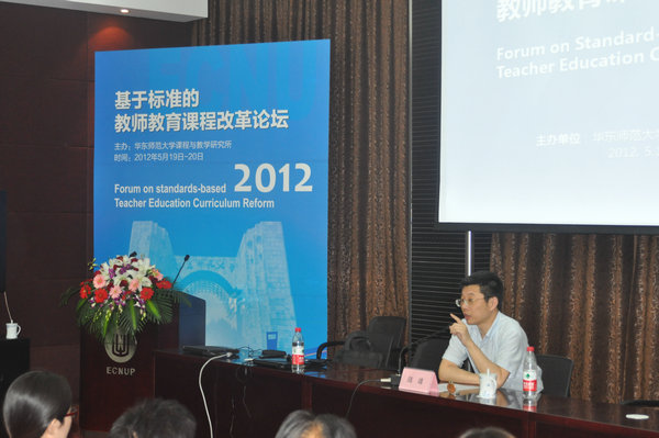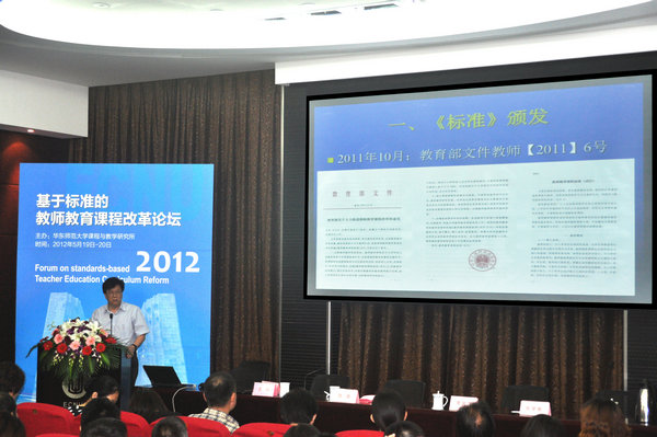 为贯彻落实《教师教育课程标准(试行)》(教师【2011】6号),大力推进教师教育课程教学改革,探索基于标准的教师教育新教材的编写,交流教师教育课程教学改革经验,5月19-20日,教育部人文社会科学重点研究基地华东师范大学课程与教学研究所携手华东师范大学出版社在我校智慧楼报告厅共同举办了“基于标准的教师教育课程改革论坛”,吸引了来自全国各师范院校的教师教育管理者,教师教育课程标准的开发者和教材编写者等近百名代表参加。华东师范大学副校长陆靖教授、出版社社长王焰女士出席论坛开幕式并作重要讲话。