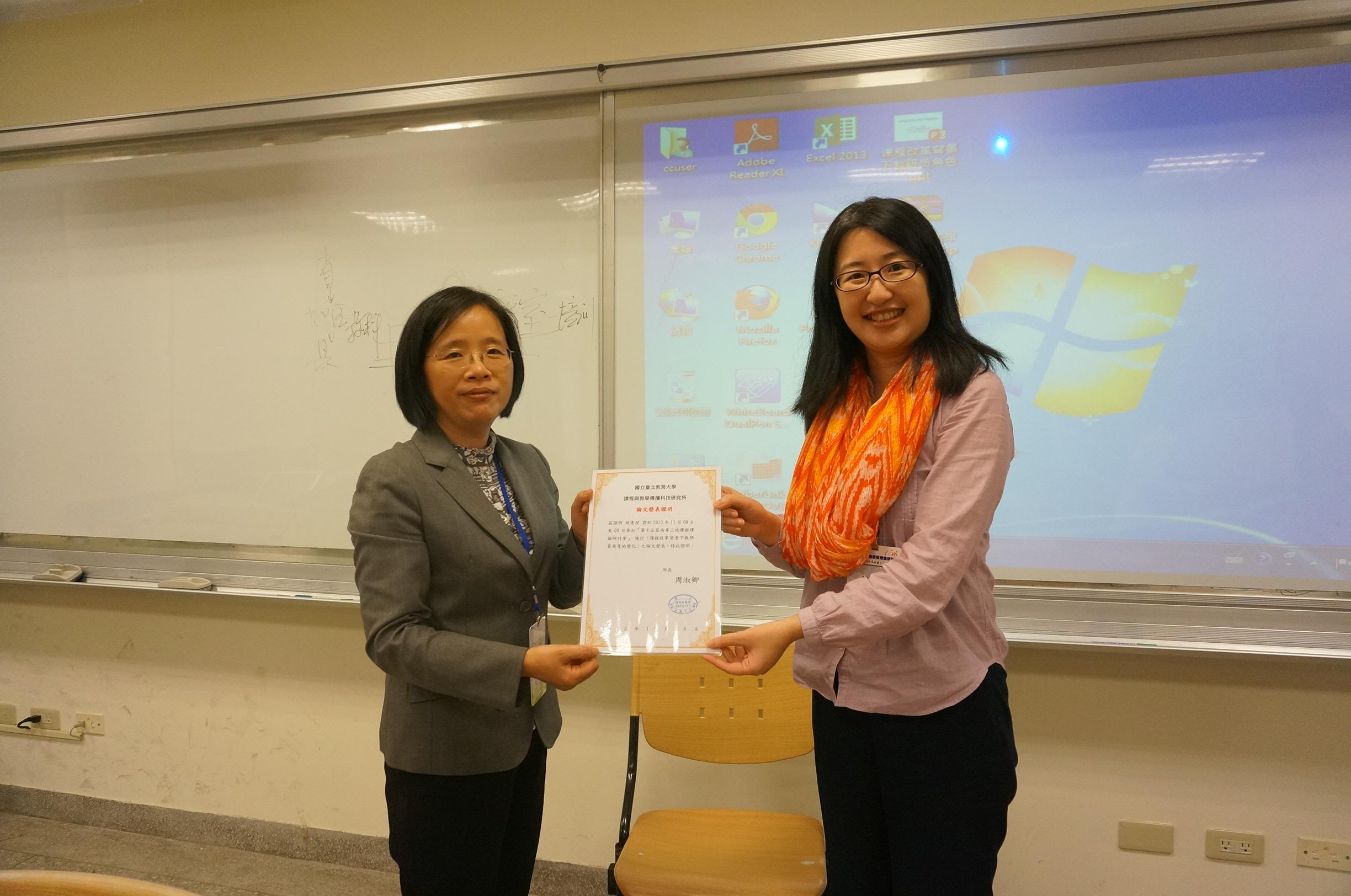 崔允漷教授与台北教育大学课研所周淑卿所长互赠礼物