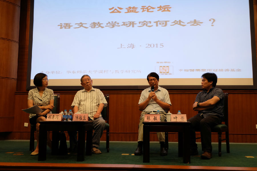 2015年8月23日,由华东师范大学课程与教学研究所和上海市小学语文教学研究专业委员会联合主办,幸福医药黎用冠慈善基金资助的公益论坛“语文教学研究何处去”在华东师范大学逸夫楼报告厅如期举行。本次论坛得到华东师范大学教育发展基金会的大力支持。本届论坛聚焦“语文教学研究”,立足于中国已有的组织形态“教研组”,邀请国内外专家、教育实践者通过专题报告、开放论坛、自由问答等多种形式,呈现语文教学研究中的挑战、行动与反思,为改进我国语文教学提供专业支持。