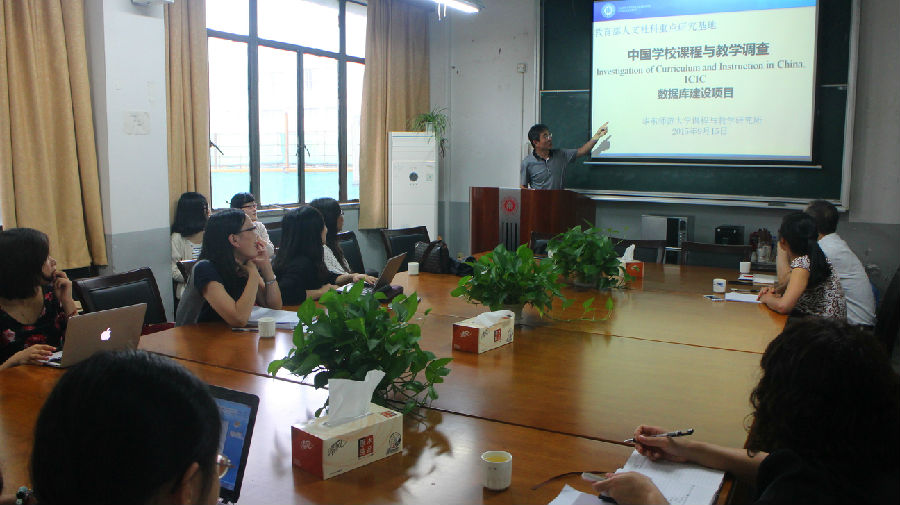 2015年9月15日,美国芝加哥大学洪光磊教授应邀来与我所杨向东教授、吴刚平教授、安桂清副教授、周文叶副教授、黄小瑞老师等多位专家就中国学校课程与教学数据库(ICIC数据库)项目建设与未来发展进行了深入交流。