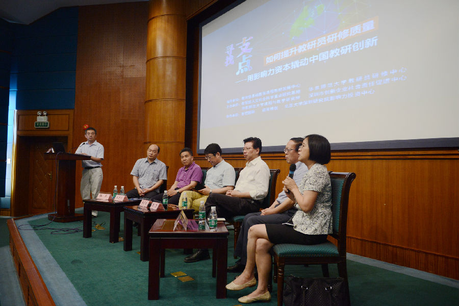 16日下午,与会的教育界、企业界领导与专家进行了深入的专题对话。前半场,由杨向东教授主持,上海市教委教研室徐淀芳主任、上海市民办教育学会胡卫会长、浙江省教研室张丰副主任、江苏省常州市教研室朱志平主任、河南省郑州市教育局田保华副局长,以及胡惠闵教授,围绕“教研制度撬动中国教育创新”主题展开了独到的分享与深入的对话。在“社会力量助推中国教研创新”对话环节,由梁宇东先生主持,莫景祺处长与首控基金合伙人缪林霏、北京大学深圳研究院影响力投资研究中心主任王家昌、国家开发银行中国开发金融促进会沈霄萍、前海博创陈铭贤执行董事、四川万华投资集团总经理詹向农等来自企业界的代表,就公益资本如何参与教育创新进行跨界的对话,并表达了共同的心愿:让我们一起,通过撬动教研创新实现中国教育创新。