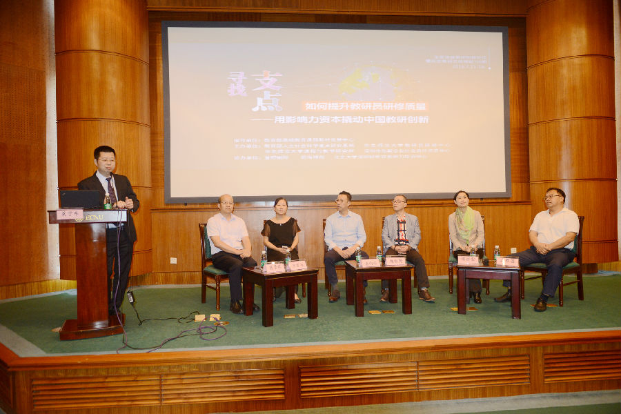 本届论坛为期一天半。7月15日下午为内部研讨,特邀了三十多位来自全国各地的教研部门领导前来参会,会上举行了教研员研修中心特聘研究员聘任仪式,并请南京市教研室陆静副主任、原郑州教研室周文胜主任、沈阳大学教育学院赵海涛院长分享了在华东师大教研员研修中心的研修经历以及研修后续实践情况,接下来分成三组,就“如何提升教研员研修质量”进行了深入的研讨。