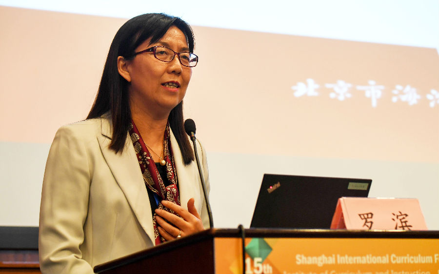 北京市海淀区教师进修学校校长、教育部基础教育课程教材专家委员会委员罗滨以“促进学生核心素养发展的学校课程建设指导”为题作报告。她认为,课程建设应促进学生素养的发展是我国当前推进基础教育课程改革的目标。接着,她通过图片、视频等方式介绍了北京市海淀区通过开展各类区域教研活动、召开学科教育专题论坛、研制课程建设工作指导手册等一系列实践措施,来指导、优化学校的课程建设,提升课程建设主体的课程能力,进而提升学校的课程育人质量,促进学生核心素养的发展。