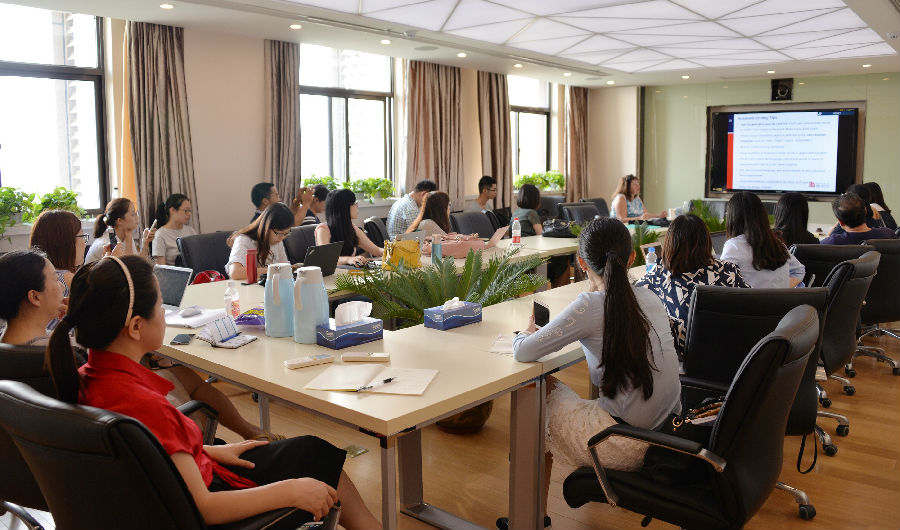 7月14日下午,Sally Thomas教授来到理科大楼A510教室,为正在参加研修的天津滨海新区骨干教师们带来一场一线教师工作坊,肖思汉博士作翻译。活动中,Thomas教授首先做了一场题为“专业学习共同体的建设与评估”的讲座,介绍了PLC(专业学习共同体)的先进教学理念,展示了一幅极具吸引力的教育图景,即具有全纳性的一群人,在共同体内部和外部共同致力于学生的培养与教育。接着,Thomas教授询问了教师们对于“专业学习共同体”的需求,并认真解答了他们的相关困惑。