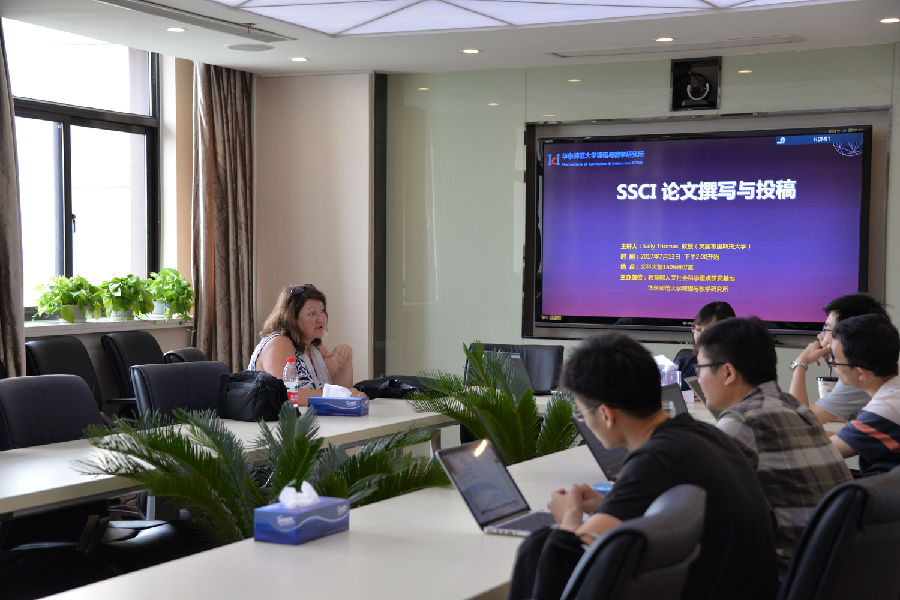 7月12日,Sally Thomas教授举办了一场主题为“SSCI 论文撰写与投稿”的研究生工作坊,吸引了教育学部各单位硕、博士研究生的参与。课程所研究员黄小瑞博士做主持。作为SSCI来源期刊《Assessment in Education: Principles, Policy & Practice》的执行编辑,Thomas教授结合自身工作和论文发表经验,为大家提供了许多SSCI论文撰写与投稿方面的建议。她指出,发表论文需要选择合适的期刊,并以自己的投稿和发表经历为例,介绍了不同期刊的特点。
