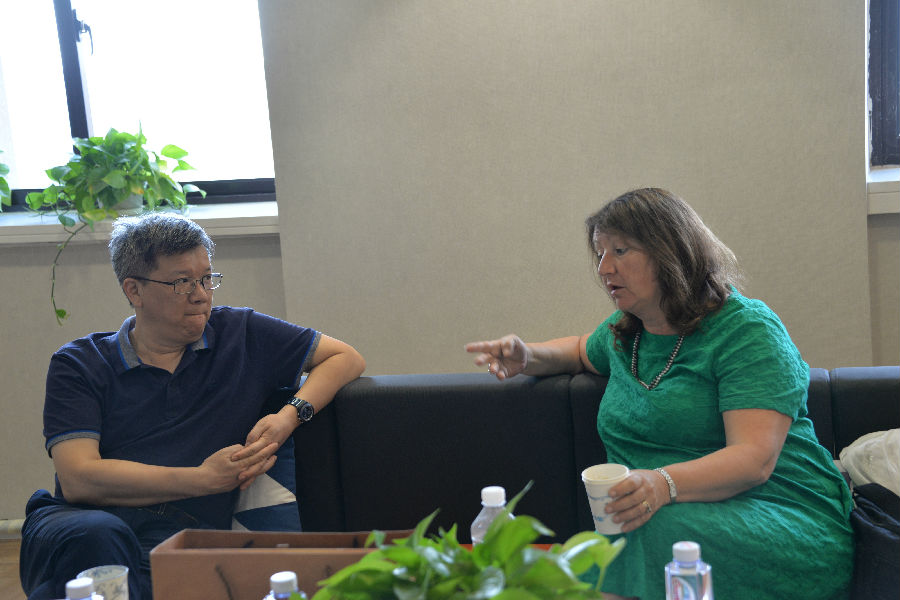 7月17日下午,Sally Thomas教授与课程所研究员在文科大楼1610室举行了内部研讨会,研讨聚焦“中小学课程实施过程监测研究”项目和国际合作这两个问题。围绕项目中遇到的问题,与会人员讨论了关于国家课程方案的调查、管理经验方面的国际借鉴,在调查样本学校和教师的过程中如何获得可靠数据,如何采取合适的方式报告监测结果等话题。
