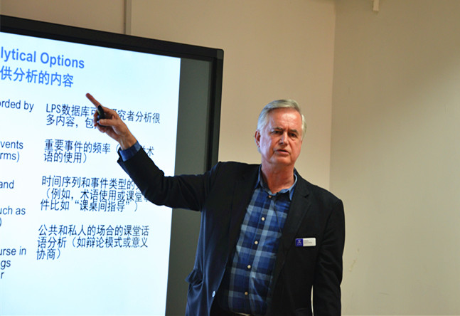 Clarke 教授和 Chan 博士展示了他们的课堂实验室,详细介绍了他们开展课堂研究的方法和过程,以及“学习者视角”和“学习的社会单元”两项课题的研究成果。通过邀请听众现场分析数据的方式,两位专家还呈现了他们对课堂话语的微观分析取径。