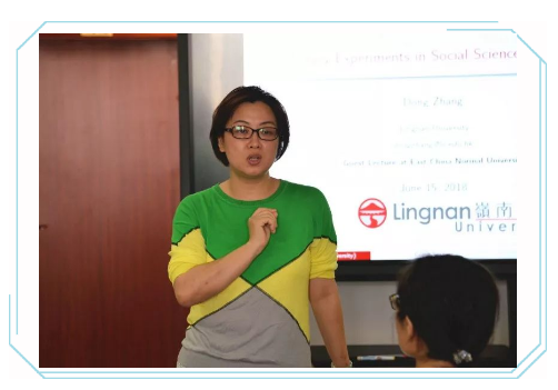 在香港中文大学尹弘飚教授的量化研究设计与澳门大学于书林教授的质化研究设计之后,6月15日下午,来自香港岭南大学的张冬博士为课程所的师生们做了一场以政治学研究为例,如何开展调查实验研究方法的报告。