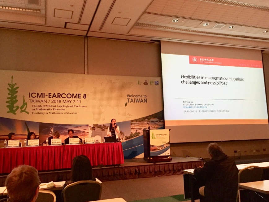 徐斌艳教授应第8届东亚数学教育国际会议(EARCOME-8)的国际程序委员会邀请,于5月8日-11日出席会议并作题为“Flexibilities in mathematics education: challenges and possibilities”的大会报告。在报告中讨论了数学教育关注灵活性的意义,并结合在实践中开展的案例,分析中国学生在数学问题提出素养上的灵活表现,以及数学项目活动的教学实施对中国数学课堂教学灵活性的影响。来自实践改革的数据,激发了与会的国际学者们的深入研讨,同时也交流分享不同文化下,数学课程改革的定位与走向等重要问题。