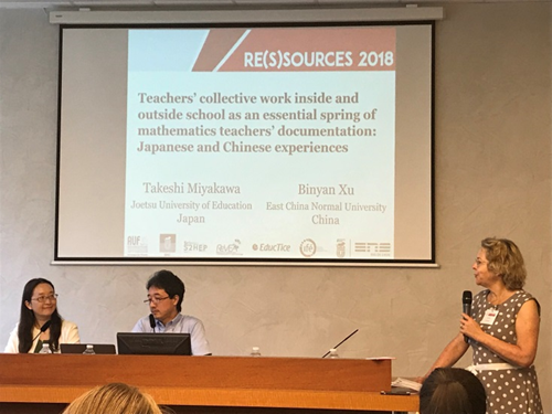 徐斌艳教授应法国里昂高师法国国家教育研究院邀请,于5月27日-6月2日参加“资源研究国际论坛”,不仅作题为“Teachers’ collective work inside and outside school as an essential spring of mathematics teachers’ documentation: Japanese and Chinese experiences”的大会报告,而且与国际学者合作作题为“Mathematics Teachers as designers: an international perspective”的大会专题报告。为国际学者理解中国数学教师校本合作教研、互动设计教学打开通道,与会的研究者与实践者对中国数学教师合作教研与资源建设能力深感敬佩,也对中国数学教师多重身份的有序转换充满好奇。