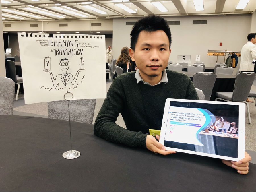 在本届年会上,华东师大课程与教学研究所杨晓哲博士作为特邀学者作了题为“通过教师共创知识产品与交易,理解教师学习(Understanding teacher thinking and learning through teacher-created knowledge-products and transactions)”的专题报告。报告分享了通过教师创建知识产品的方式,促进教师交流与专业发展的实证研究。