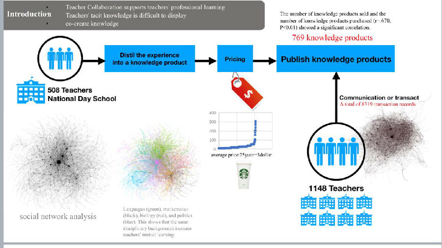 该实证研究汇集了508名教师群体产生的769个有效知识产品,并有1148名外来教师参与交流交易活动。通过聚焦新时代环境下,教师隐形知识及教师知识隐藏,如何通过平台化、游戏化、知识产品交易的机制创建,激发教师之间的深度交流,促进学科内教师的合作与跨学科教师之间的经验借鉴。