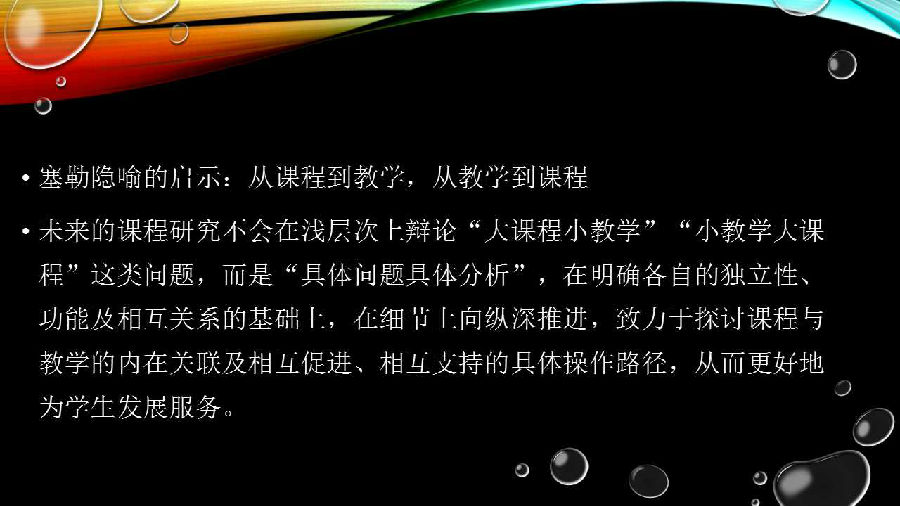 另外,向微观精细深化,一定深化到教学里。在中国有所谓大课程小教学,或者大教学小课程这样的观点,但是将来一定不再这么分了,所有的课程研究都应该具体到教学当中去研究。过去的课程研究,首先要研究课程结构,如有什么课程类型,有多少,比例怎么样,然后再进入到教学内容,我选哪些内容,哪些是核心,哪些是边缘的,我怎么样去研究。现在我们不仅研究课程结构,还要研究课程内容的选择,研究课程内容的细分,以及研究不同内容与学生发展的关系及相应的作用,已经把课程与教学结合起来研究了。