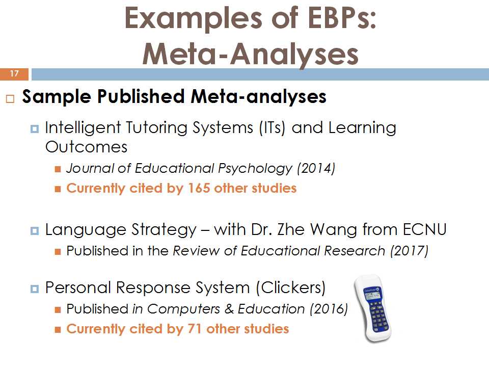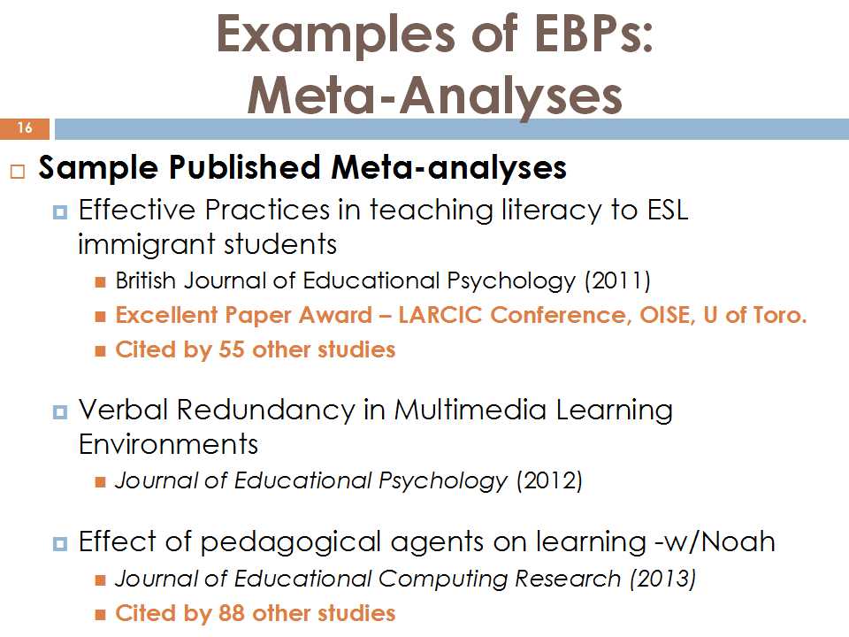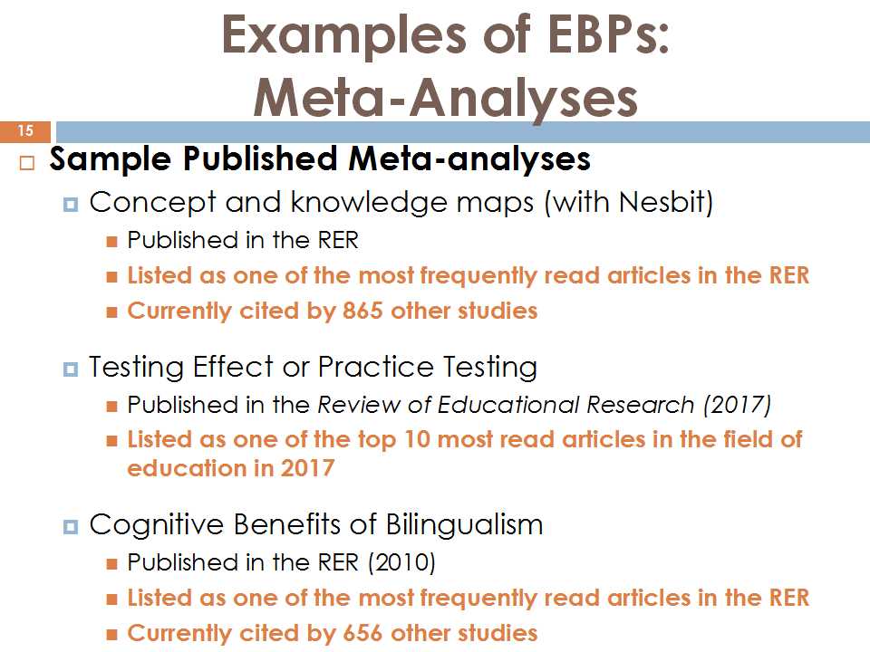 另外一个问题在基于过去二十年我的学术生涯方面来讲,我认为像医学,在应用方面大致上做的还是不错的、特别是在美国这个环境下,很多学到的东西都能够用到实践当中。我现在还不能够完全把它用在中国的情境里,就是怎么样能够把所学到的东西做到理论与实践相结合,这中间貌似还有一个很大的鸿沟。我们要问一个问题,那就是怎样把我们的研究结果更多地跟实践相结合,跟政策编制进行结合。这些结果不仅是用于课堂,还要影响到决策人。经过分析刚才的这些定义后,我们分析整合了最重要的因素。可能在过去的二十年到四十年当中,已经有很多人已经开始做这种整合分析了,去审视教育不同的策略,不同的教学方法。不仅是审视这些做法的有效性,也去看它们是否有效。