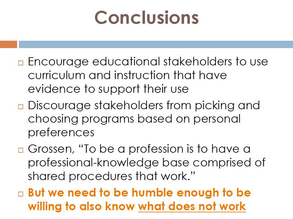 最后总结一下我刚才讲的这种基于证据的教学方法。我鼓励教育利益相关者在使用的课程和教学方法要有证据来支撑他们的使用,不太同意那些利益相关者根据个人喜好随便挑选的一些课程。我非常希望在座各位能够跟我一起来找出到底现在我们教的东西还有什么对于孩子是没有帮助的。基于证据,我们作为老师将来就能够走到校长那说,这个课程其实对学生是没有用的。我们希望有一种很好的环境,在这种环境中可以知道什么东西是对学生是没用的。这样的话会我们有更好的机会,能够开始更加彻底地审视现在,以使将来做得更好。