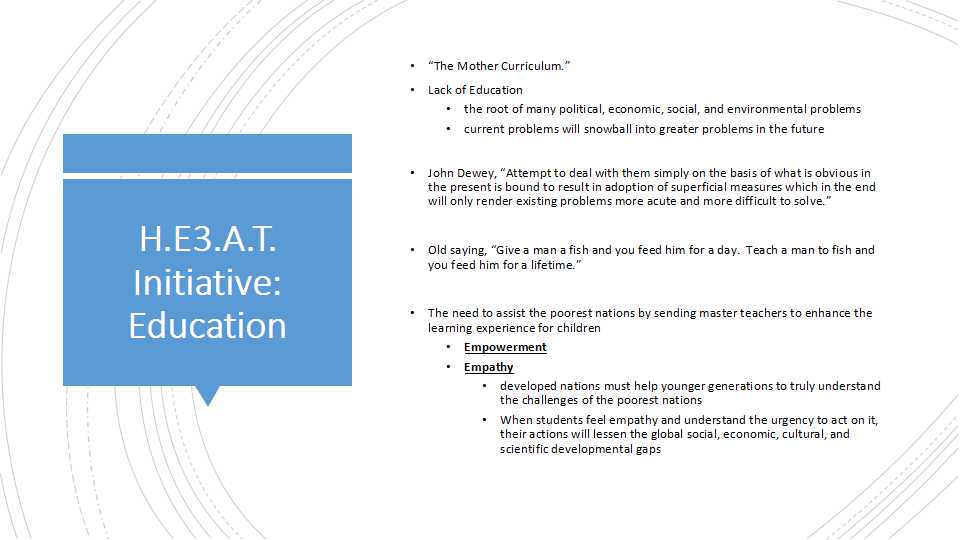 我提到E的时候,前面只提到两个E,把最重要的留到最后,就是母课程。大家也知道教育贫乏是许多政治、经济、社会问题的根源,现在的问题将来就像滚雪球一样变得越来越可怕。只是想把目前能够看得清楚的东西,遗失的东西赶快补起来,否则最后可能没办法补。我们现在想激发学生,让他们帮助其他国家,帮助下一代人,然后也是帮助他们自己,那我们到底还有多少时间呢? 在不久之前,我在手机上看到一个消息,咱们国家2030年以后,可能会出现灾难性的气候变化,所以可能就只有一点点时间了。因而我们美国也会采取许多积极的行动,比如建立合作伙伴关系,也跟荷兰、芬兰等其他一些欧洲国家合作,接受他们的学生来美国交换学习,修一些课程,都是一些非常严格的课程。