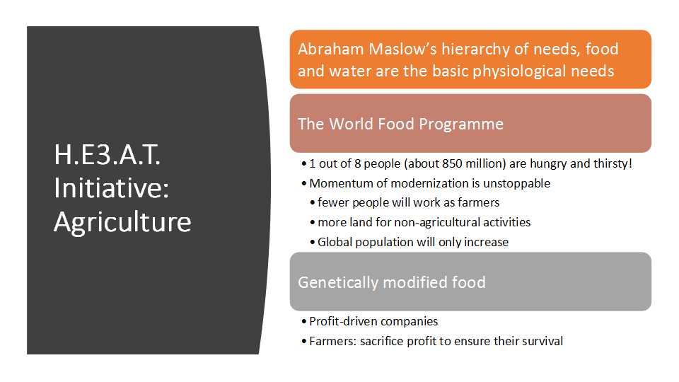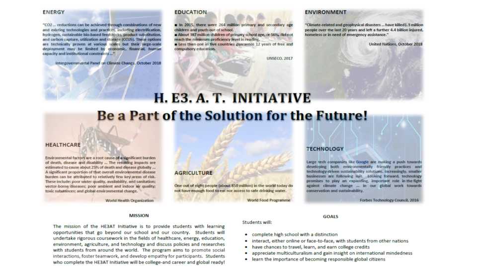 所以在我们的课程当中,我们应该教给学生什么呢?很幸运的是我们都非常有创造力,我们的政府提出了H.E3.A.T,H是医疗卫生,E是能源、教育、环境,A是农业,T是科技。政府准备做大量的广告向学生们大幅度地宣传上面所提到的六点是多么富有挑战性,但实际上也想给我们的学生提供更多的机会,能够让他们在未来积极地参与到实现这六点的项目中来。并让他们懂得跟世界各地的人进行学习、沟通、合作,逐渐成长为一个有能力有责任心的全球公民。