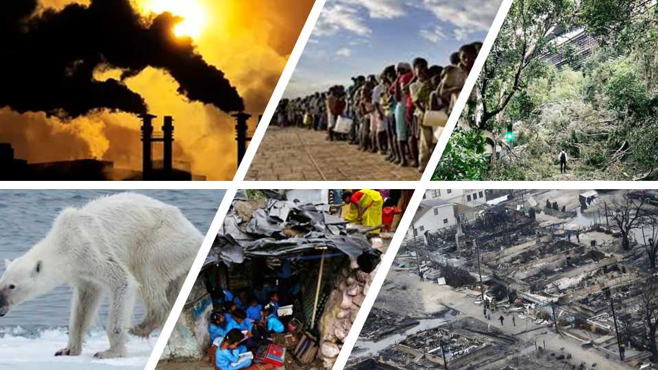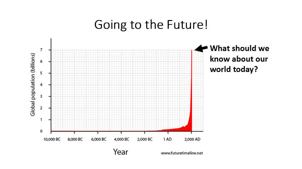 前面讲了我们现在所做的,那未来我们怎么走呢?大家看一下大屏幕,图中全球的人口从古代到现代,从公元前1万年,到公元2000年,人口急剧上升,增加到几十亿。那么除此了人口的增长之外,对于我们所生存的这个世界,我们的了解还有多少呢?从图中得出的结果大都是非常负面的,第一张告诉我们环境污染,动物濒临灭绝;第二张在闹饥荒,人民在排队领食物;接着是最近一次台风袭击香港的照片,像一个历史性的灾难。