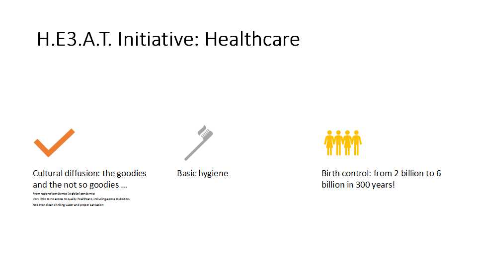 我们看到这里面的H主要是关于医疗卫生。有时候文化的融合会带来一些优质的东西,但也有劣质的东西。我们仍就有这种恐惧,例如全球某一个地区的传染病,能够伴随着全球化而传遍全世界。许多人不太重视平时的卫生健康,有时候甚至生病了都不去看医生,更别提日常保健了。在平时的生活中没有干净的饮用水,所以我们需要向学生传递个人的卫生健康知识。