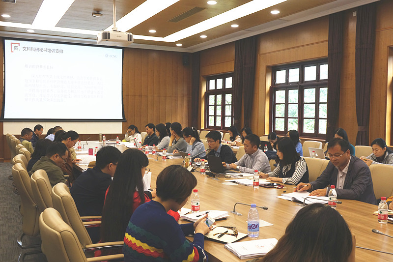 Firstly, Chen Danfeng introduced the posts setting of scientific secretaries in ECNU, combined with the relevant documents of the Central Government and the Ministry of Education, the university will fully support scientific secretaries’ work in many aspects, such as staff levels, vocational training and so on. Combined with the social science management work of the university, director Wu Wenyu introduced the responsibility and mission of scientific secretaries, the basic situation of liberal arts scientific research and the scientific secretary training in detail. He emphasized that as an important part of the management of scientific research in ECNU, the scientific secretaries are playing a crucial role in scientific research management, they’re also the organizers and executors of scientific research activities. What’s more, they’re also an important support for the construction of "Double Frist-rate" universities.