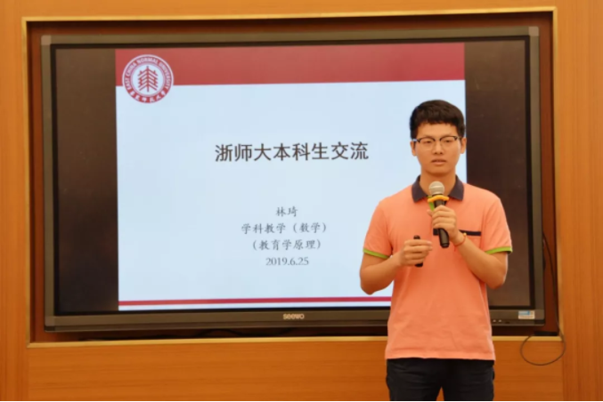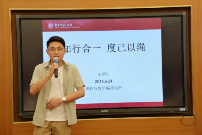 Subsequently, Wang Houhong, one of the postgraduate students of ICI spoke as a representative of all the postgraduate students, introduced the basic information of ICI to the visiting delegation, and shared his study and life in the past year. Lin Qi, who was graduated from Zhejiang Normal University, and now one of the students of the Institute of Teacher Education, ECNU, shared his feelings about his study and life in ECNU.