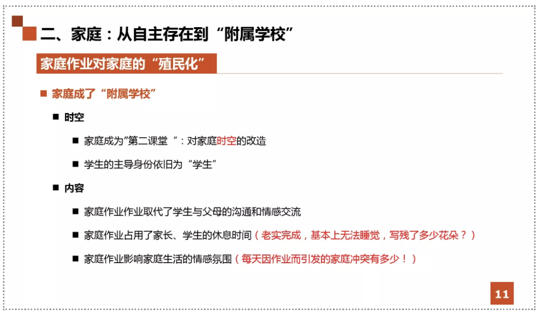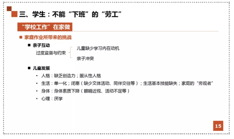 When we talk about homework, there is an inertial thinking that we care most about the amount of homework. If you evaluate homework from the dimension of the amount of it, the preset is that you’re actually acknowledging the legitimacy of homework, the fundamental issue is the excessive amount of homework.
