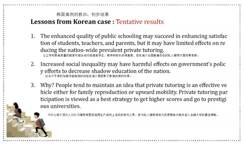 5. If efforts are not made to change social and educational inequalities, the regulation of private tutoring may not be able to defeat the long-standing shadow education, which will only continue to prevail underground.