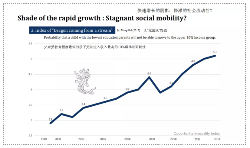 There is an index of “Dragon coming from a stream” in Korea, it indicates the possibility that if a child’s father who has the lowest level of education will not be able to enter the top 10% of the income group.