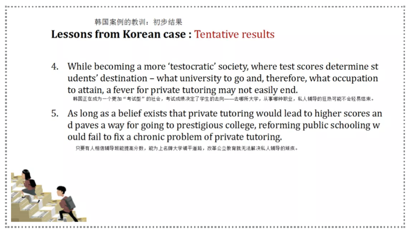 4. As long as some people believe that private tutoring can improve scores and pave the way for admission to prestigious universities, the reform of public education will not solve the problem of private tutoring.