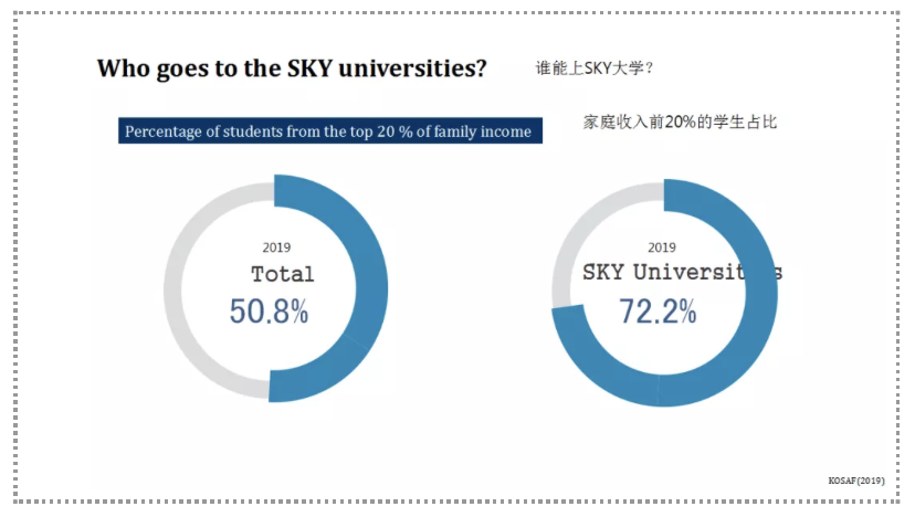 We investigated the family income level of college students. For students in SKY universities, 72.2 percent of students come from the top 20 percent of household incomes.