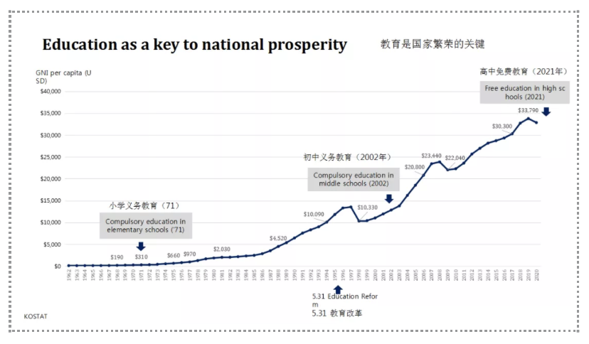 What do you think is the driving force behind the economic growth? The secret lies in the state’s investment in education. Koreans believe that in order to develop the economy and industry, we should cultivate industrial strength, which needs the support of capable talents. But the country didn’t have enough money, therefore, the Korean government must gradually invest effectively in education according to the different stages of the development of Korean industry.