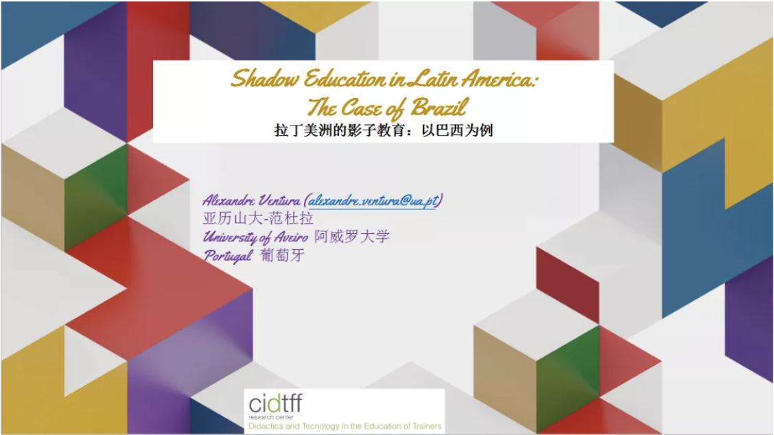 Good afternoon, everyone, I am Alexandre Ventura, from University of Aveiro in Portugal. I have been committed to the research on shadow education, paying attention to the needs of shadow education, as well as the impact of shadow education on students’ learning, and on the policy regulatory system.