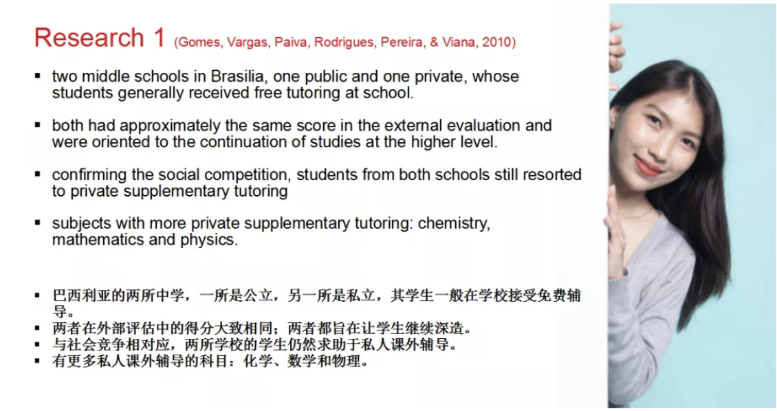 Next, I will focus on some research to let you know what these studies have found on shadow education.
