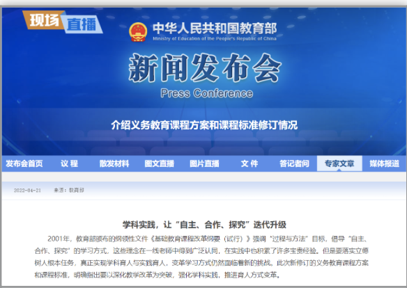 On April 21st, 2022, the Ministry of Education officially issued curriculum plan and curriculum standards (16 subjects totally) of compulsory education (2022 version), and released expert interpretations from professor Cui Yunhuo, Hu Huimin, Wu Gangping, etc.
