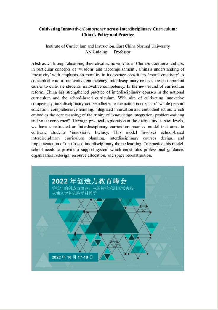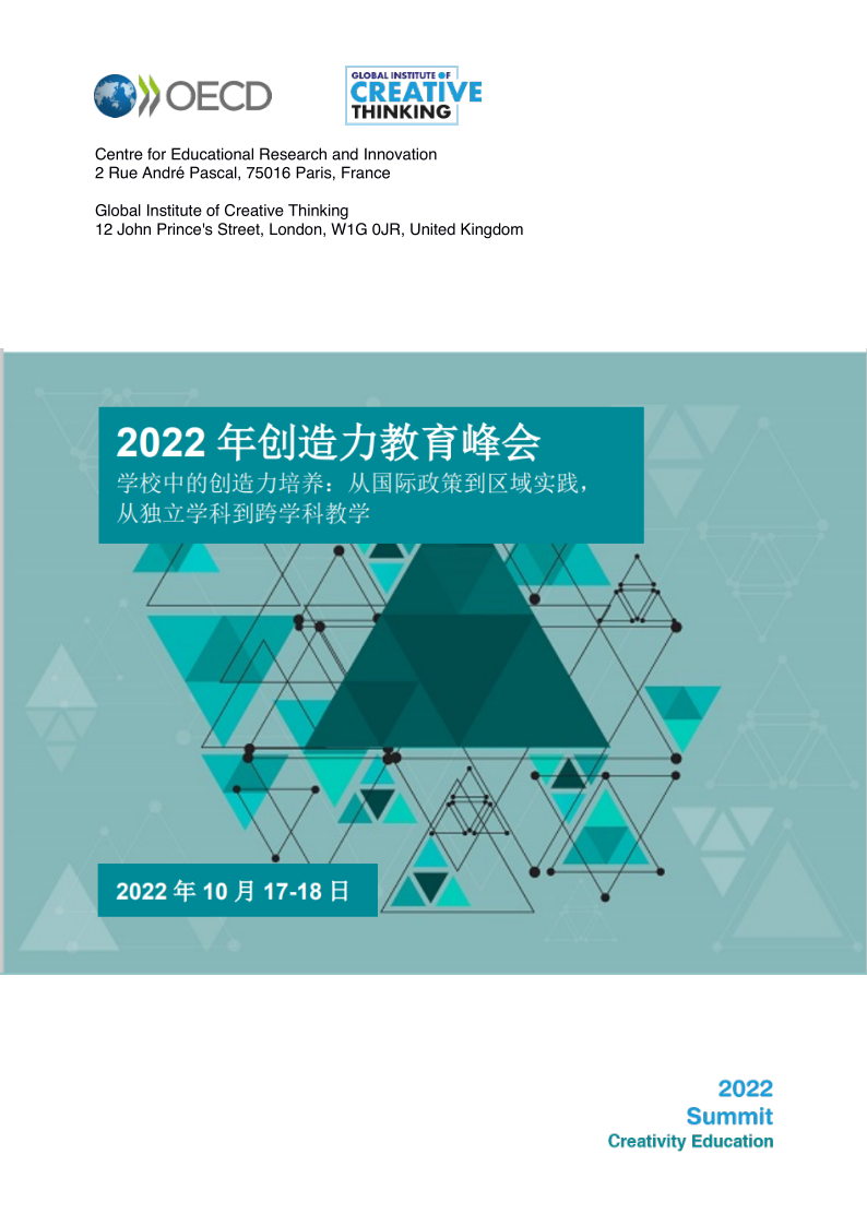 On October 17-18, OECD Center for Education Research and Innovation (CERI) and Global Institute of Creative Thinking jointly held a 2022 Creativity Education Summit, themed "Creativity Cultivation in Schools - From International Policy to Regional Practice, From Independent Disciplines to Interdisciplinary Teaching" .