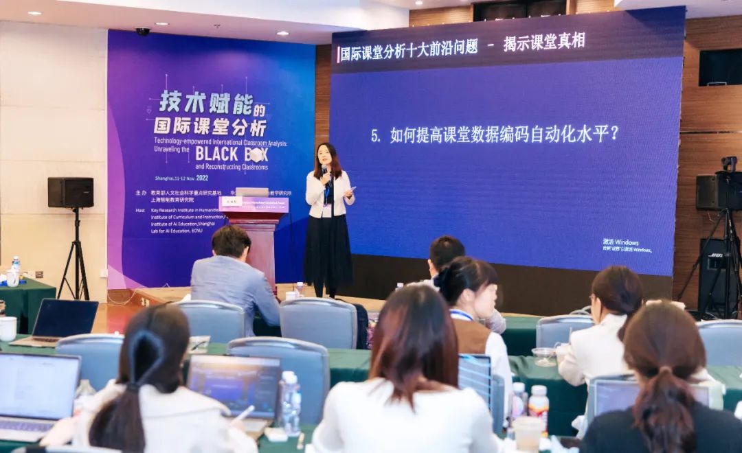 Associate Professor Shi Yuchen, deputy director of the International Classroom Analysis Laboratory of East China Normal University, made a report on "Ten Frontier Issues in International Classroom Analysis". Based on a large amount of literature review and justifications by domestic and foreign experts, the report sorts out the frontier issues that are most concerned and need to be solved in the field of classroom analysis in the world from three dimensions and multiple points.