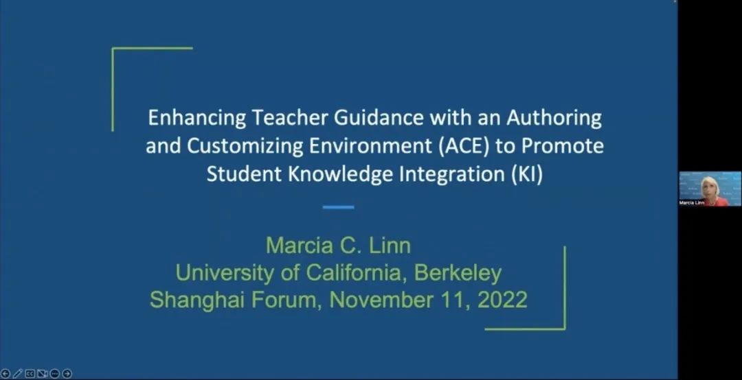 Marcia Linn, Evelyn Lois Corey Chair Professor of Instructional Science, School of Education, University of California, Berkeley, made a report titled "Enhancing Teacher Guidance with an Authoring and Customizing Environment to Promote Student Knowledge Integration" , introducing how the teaching system (Authoring and Customizing Environment) that can customize the environment can help teachers identify students who need help most, coordinate students' learning tasks and record homework, customize teaching according to homework records, and provide auto instruction for students' learning of complex science topics. The Curriculum Visualizer is used as an aid, enabling teachers to align their custom activities with knowledge integration pedagogy.