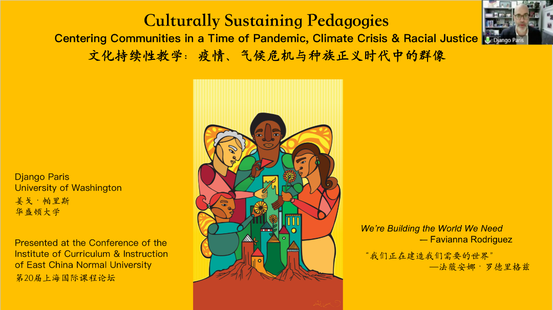 Django Paris, the James A. & Cherry A. Banks Professor of Multicultural Education and director of the Banks Center for Educational Justice in the College of Education at the University of Washington, gave a speech titled "Culturally Sustaining Pedagogies: Centering Communities in a Time of Pandemic, Climate Crisis, and Racial Justice". He takes cultural sustainability as part of school education that implements and promotes linguistic, literacy and cultural diversity with the goal of positive social change and revitalization. In addition, Professor Django Paris also clarified the key characteristics of implementing culturally sustainable instruction and its standards in the curriculum and instruction fields.