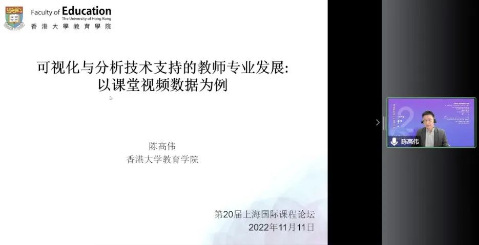 The topic of the report by Associate Professor Chen Gaowei from the Faculty of Education of the University of Hong Kong is "Teacher Professional Development Supported by Visualization and Analysis Technology: Taking Video Data as an Example". He observed that classroom teaching videos have been widely used in teachers' professional development, but teachers' concentration when watching videos and their utilization of videos will be affected by other information in the videos. Therefore, he constructed a video viewing method based on the support of visualization and analysis technology, through the cyclical intervention of "teacher videotaping-research group editing materials-classroom dialogue video analysis and visualization-regular seminar " and classroom discourse analysis tools, and made teachers' reflections on classroom teaching more focused, tracking and improvement more convenient, and comparisons and discussions among teachers more effective.