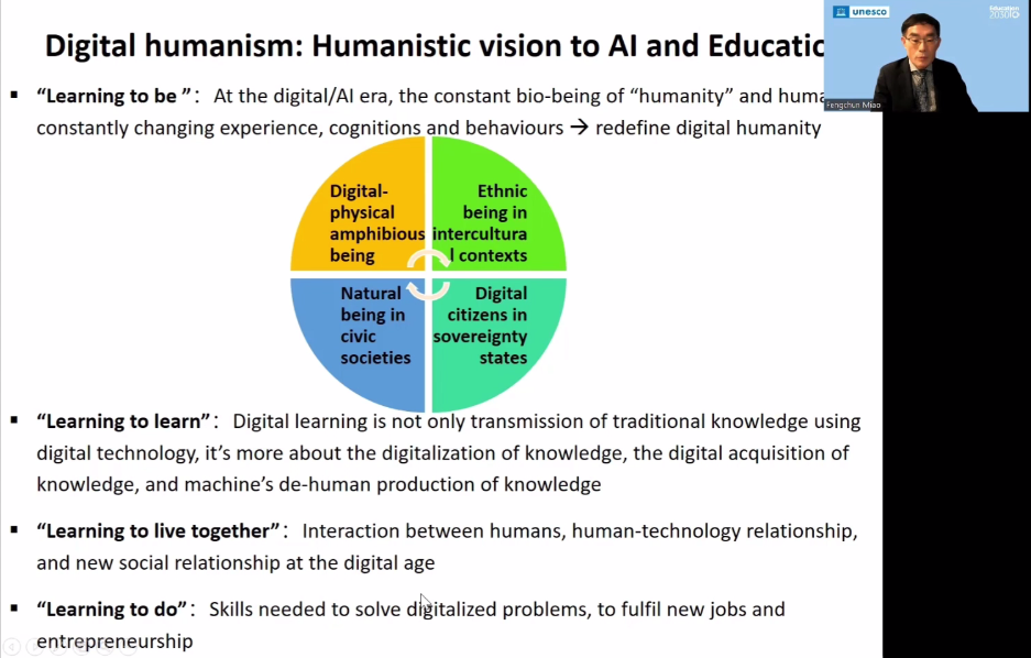 When we prepared this publication, we carried out policy assessments of national AI strategies, particularly with regard to AI and education. We then propose a series of policy planning recommendations on AI and education. But in general, in the end, we advocate that when AI is used in education, we should move towards digital humanism.